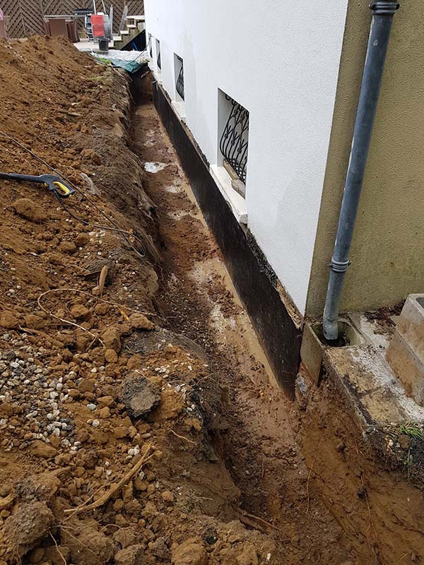 - Drainage périphérique : Pose de drains autour de la maison pour assainir les fondations et éviter les remontées capillaires.